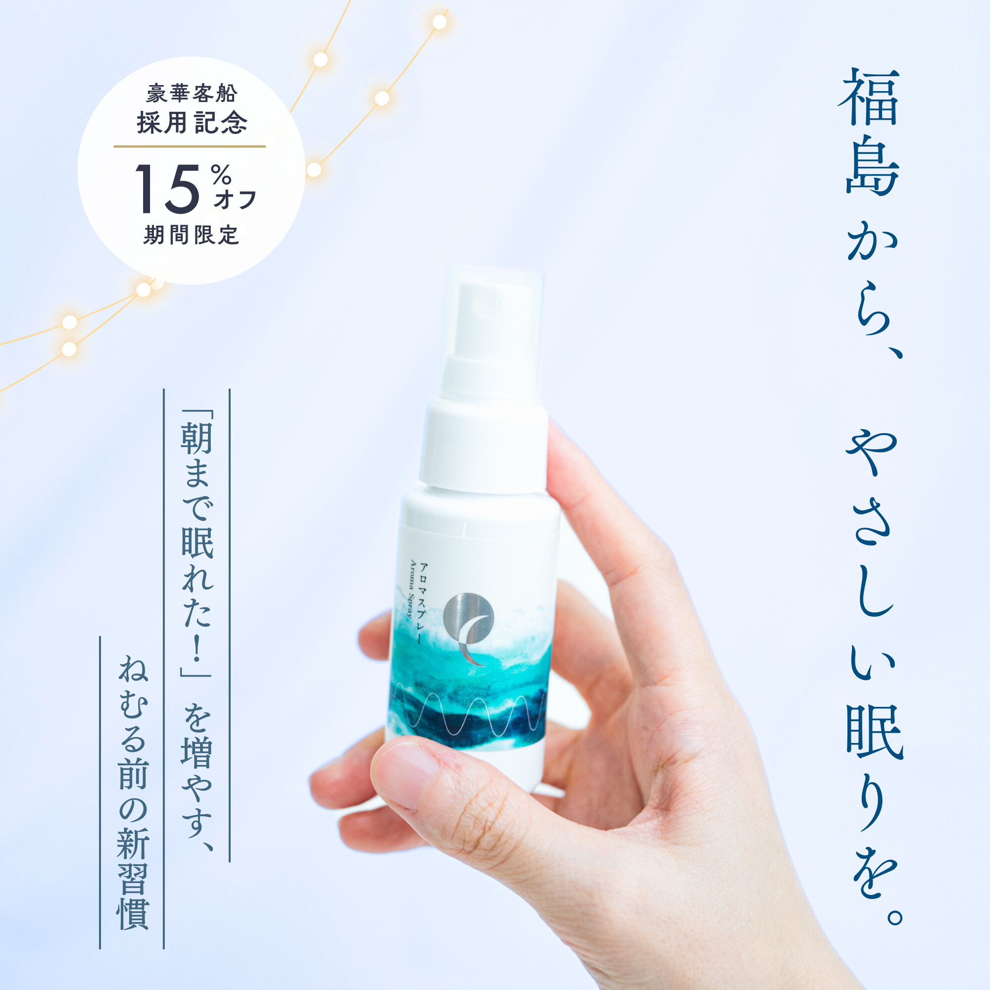 そんな風にこだわって作った、アロマスプレー。この度、豪華客船ASUKAⅢへの採用も決定しました。これを記念して、今だけ15%OFFでお届けします。